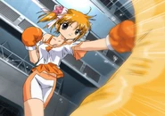 'Apricot Sakuraba' (アプリコット・桜葉 Apurikotto Sakuraba), simplified to Rico, is the first member of the Rune Angel Troupe and pilots the Cross Caliber. She is the younger sister of Milfeulle Sakuraba, who she admires immensely. She suffers from a pathological reflex toward males and gains an immense surge of strength to frequently throw them over her shoulder. She is the counterpart to her sister in both character and role in combat.